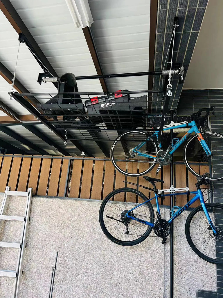 Maximize your garage or workshop space with this heavy-duty ceiling storage shelf rack system. Designed for serious DIYers and professionals, this lift-assisted storage solution keeps tools, equipment, and seasonal items safely overhead and out of the way. The sturdy construction supports substantial weight while the smooth pulley mechanism makes raising and lowering effortless. Perfect for organizing garden tools, power equipment, and supplies in any garage, shed, or workshop. Reclaim valuable floor space and keep everything within easy reach. Transform cluttered spaces into organized, functional work areas with this reliable storage solution.